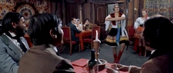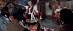 Il faut par exemple voir Romina quitter son palais en carton, lasse de l'étiquette, pour se transformer en jeune campagnarde dansant une frénétique czardas dans une taverne style "western" au milieu de soulards, coiffée de deux macarons. Leia sort de ce corps! On pourra se boucher les oreilles lorsqu'elle pousse la chansonnette et s'essaie à la Serenata (on est encore très loin des tubes du duo des années 80 comme "La felicita") mais que dire de la séquence où Al Bano/Schubert se casse la voix sur l'Ave Maria pendant que la caméra de Fizzaretti tangue sur des images pieuses, donnant à la scène un petit coté faussement psychédélique. Un grand moment! On passera sur les ralentis où les deux amoureux