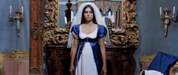 mais que dire de sa coiffure (perruque?) plus proche d'une banane façon Eddy Mitchell que d'une coupe d'époque. Difficile de ne pas pouffer de rire. Quant à Romina que beaucoup doivent attendre, oubliée la lolita d'il y a encore quelques mois en arrière, nous sommes face à une jeune femme maladroite, peu élégante, plutôt gourde dans ses crinolines, presque aussi gauche en jeune comtesse qu'Al Bano est niais dans la peau du musicien (comment oublier sa tête lorsqu'il joue du piano lors de son concert). Le couple s'est bien trouvé et il est à l'origine de bien des éclats de rires involontaires et de séquences aussi déconcertantes que par moment pathétiques.